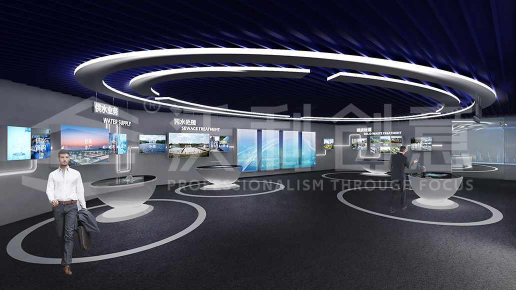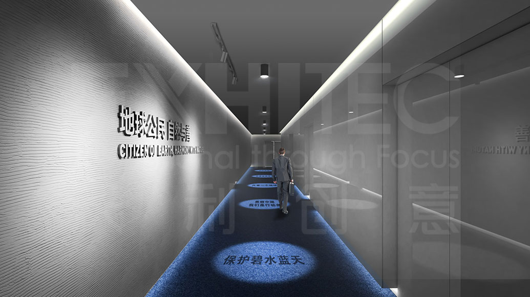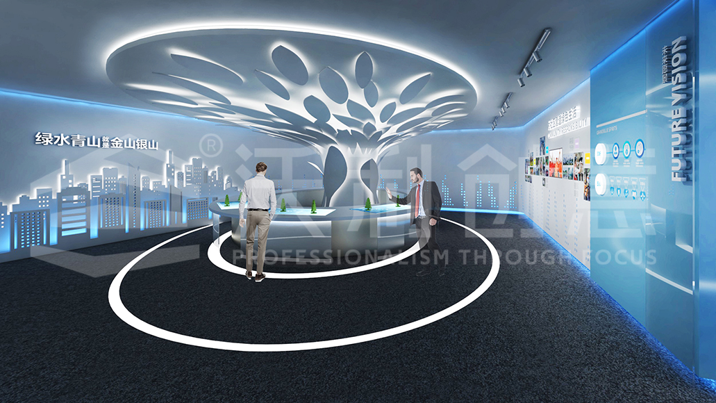 展廳以“共好、共生、共創(chuàng)”為展館設(shè)計(jì)理念,整體展廳結(jié)合科技、環(huán)保等設(shè)計(jì)元素,打造現(xiàn)代前衛(wèi)的企業(yè)展示空間,實(shí)現(xiàn)環(huán)保主題理念的完美呈現(xiàn)。利用極具科技感的多媒體展示手段,全面而系統(tǒng)地展示企業(yè)文化、產(chǎn)業(yè)領(lǐng)域及未來(lái)愿景等內(nèi)容,帶給參觀者高科技的視覺(jué)震撼與前衛(wèi)體驗(yàn),顛覆大家對(duì)環(huán)保企業(yè)的印象。