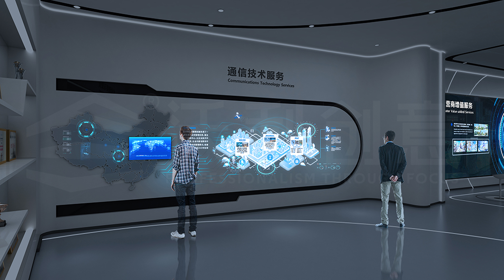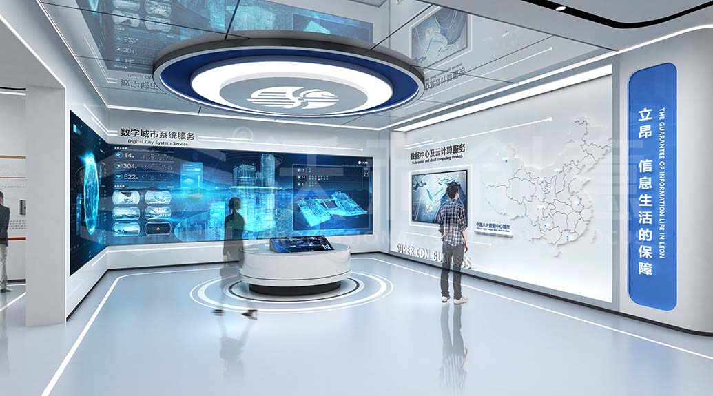 展廳設(shè)計(jì)深度挖掘立昂技術(shù)的行業(yè)特性及品牌調(diào)性,聚焦其技術(shù)創(chuàng)新,用前沿科技手段,全方位展示企業(yè)的通信技術(shù)服務(wù)、運(yùn)營(yíng)商增值服務(wù)、云計(jì)算服務(wù)和數(shù)字城市系統(tǒng)服務(wù)等信息技術(shù)場(chǎng)景應(yīng)用。