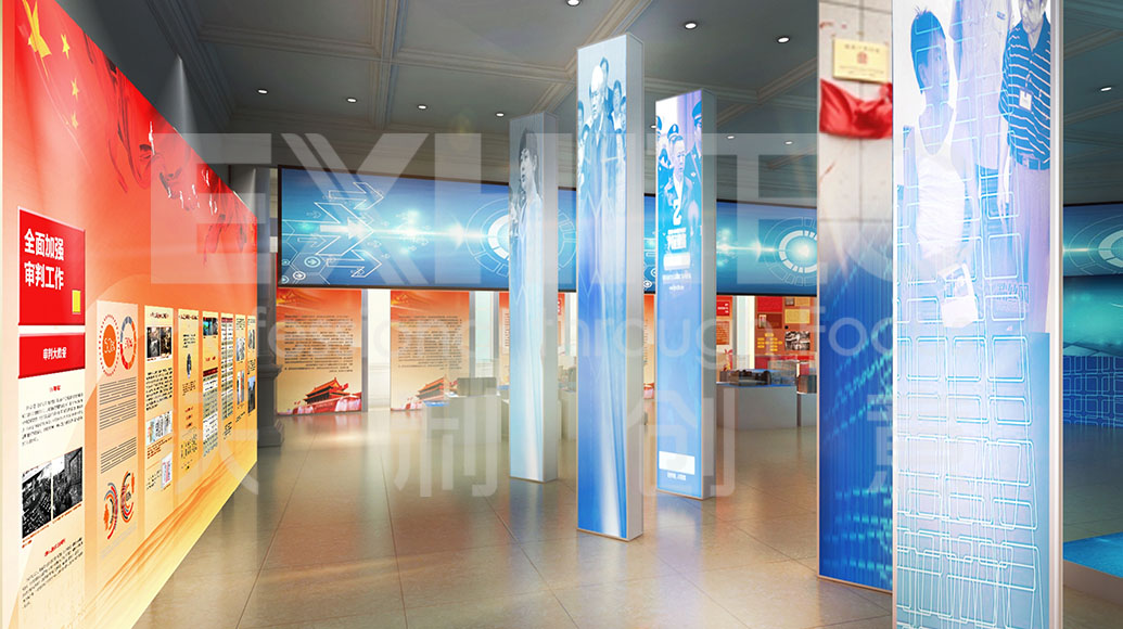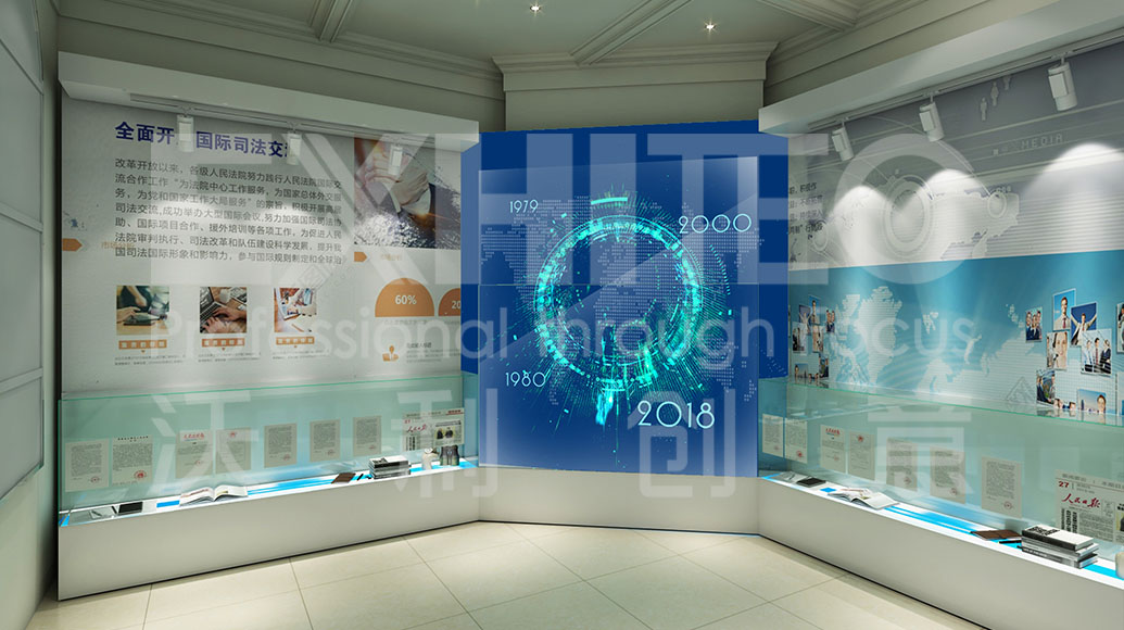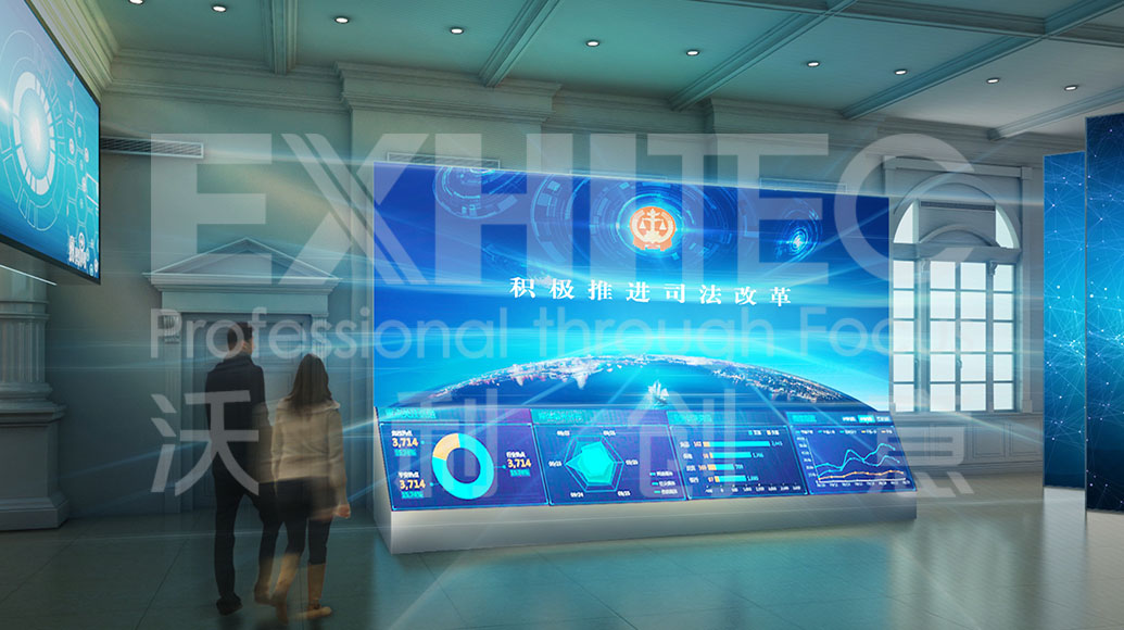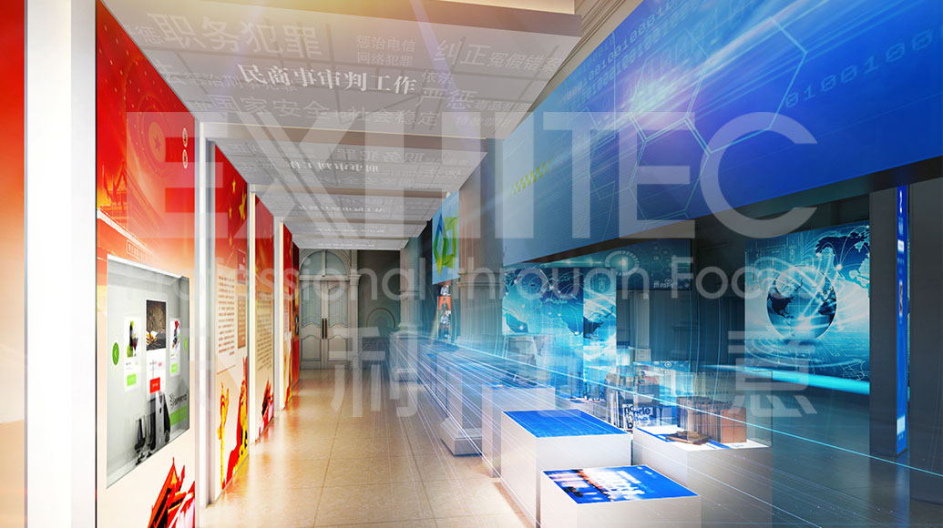 項(xiàng)目介紹 : 展廳以“中國(guó)改革開(kāi)放40周年”為主題,展示改革開(kāi)放以來(lái)國(guó)家人民法院的所走過(guò)的歷史沿革。展廳通過(guò)多種案例宗卷,以更易懂的內(nèi)容策劃,結(jié)合弧幕投影、互動(dòng)桌面及通電玻璃等多種創(chuàng)新技術(shù),將司法內(nèi)容形象地展現(xiàn)在觀眾面前,打造一個(gè)智能化、科技化的法院展廳。