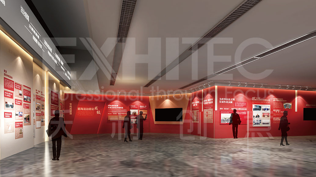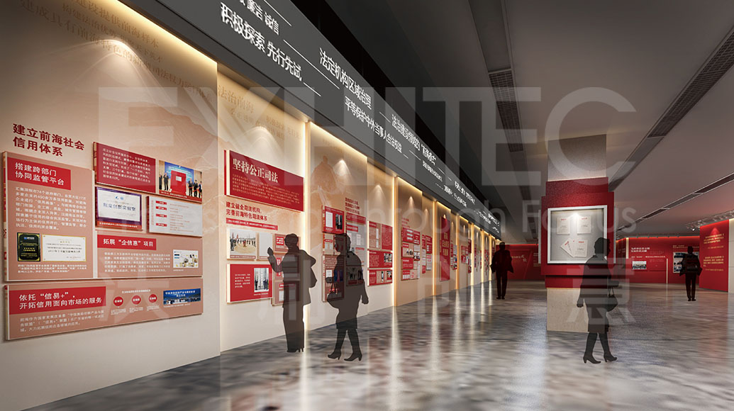 展廳貫穿行動綱領(lǐng)、創(chuàng)新實踐和突出成效三個篇章,采用DID拼接屏、LED全彩屏及觸控屏等多媒體互動設(shè)備,突出展示前海作為中國首個國家級法治建設(shè)示范區(qū)的法治建設(shè)成果和示范經(jīng)驗,為改革開放40周年獻禮。
