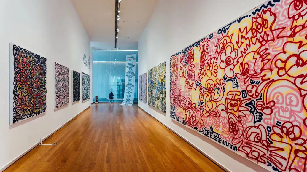 《涂鴉意像 Abstract Doodlism》是英國藝術家Mr Doodle在深圳的首展,現(xiàn)場共展出21幅作品,呈現(xiàn)其最新的「抽象主義涂鴉」系列。展覽特別將入口設置成涂鴉隧道。穿過涂鴉隧道遁入DOODLE WORLD,與快樂涂鴉撞個滿懷。展廳一角懸掛著一條長幅清單,是Mr Doodle對本次展覽和觀眾傳遞的特別寄語。