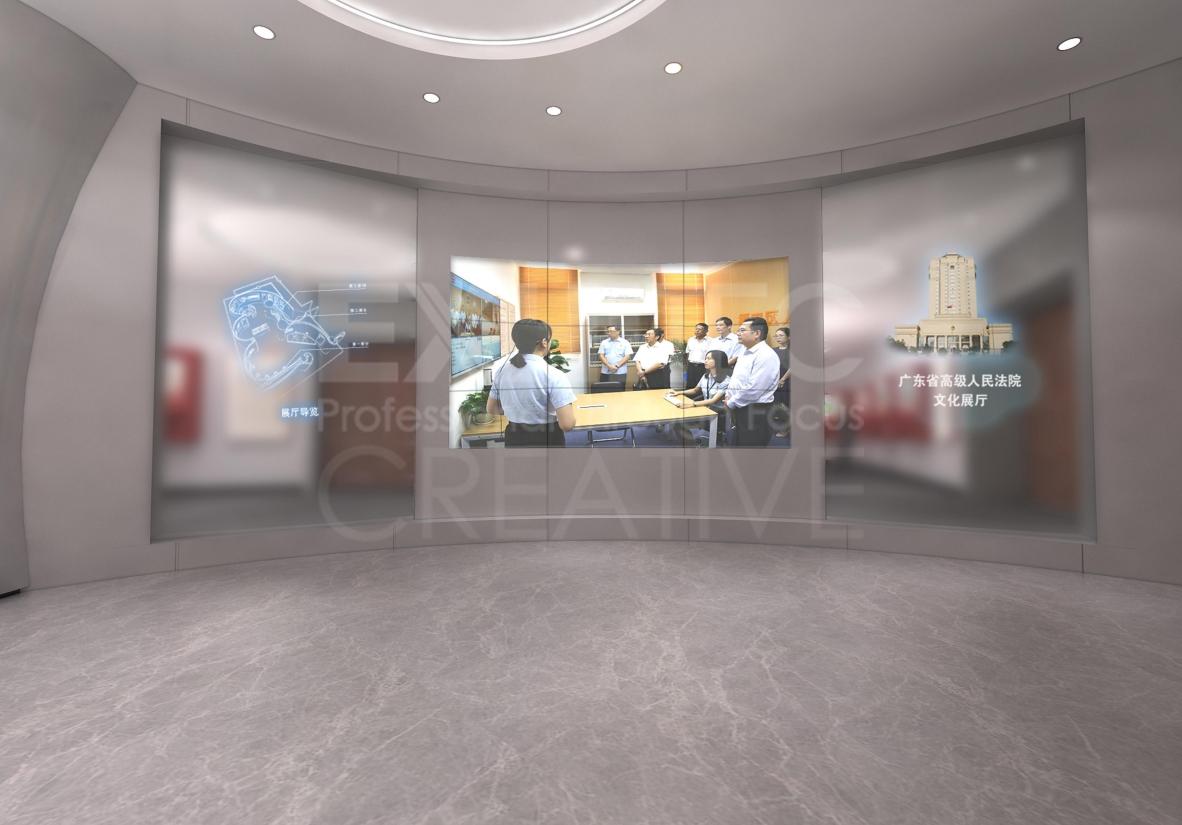 廣東法院展覽館充分考慮了廣東法院的發(fā)展特色和位于改革開放前沿的地位,基于引領(lǐng)而不超前、不從眾的思路,將高科技與信息化充分運(yùn)用于展覽館布局中,注重觀展和體驗(yàn)相結(jié)合,精心打造四大展區(qū)+九大高科技展項(xiàng),全方位展示了廣東法院近70年來所取得的輝煌成果和寶貴的經(jīng)驗(yàn)。