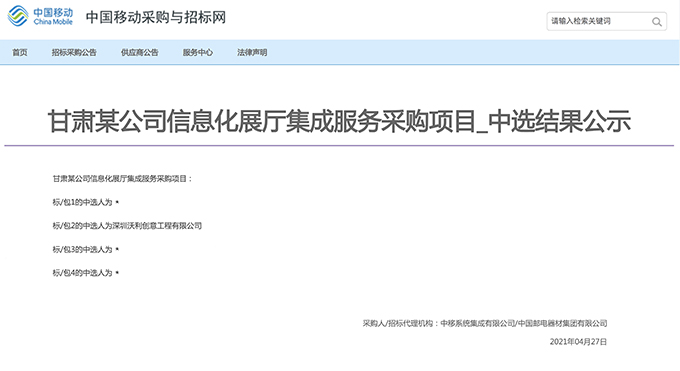 信息化展廳集成服務(wù)招標(biāo)是甘肅移動為推動落實 “一地一展廳”工作,打造綜合型、跨時代的體驗中心,提升全網(wǎng)展廳一致性體驗的舉措。