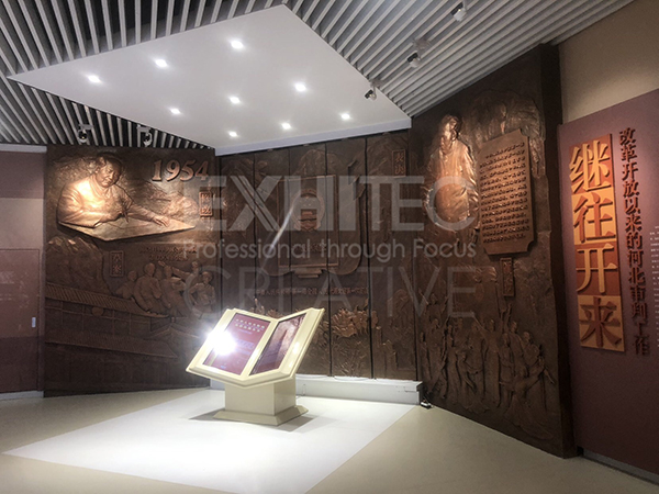 展覽館以燕趙法源為開(kāi)篇,采用曲折迂回的參觀路線設(shè)計(jì)。從法歌史吟、紅色司法、砥礪前行、繼往開(kāi)來(lái)、院史沿革、長(zhǎng)守素心七個(gè)角度結(jié)合浮雕、場(chǎng)景復(fù)原和多媒體創(chuàng)意等多樣形式全面展示了法院文化在建設(shè)法治中國(guó)、平安城市中取得的豐碩成果。