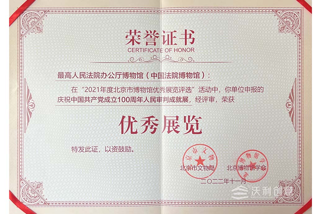 自2018年以來,沃利創(chuàng)意先后承接了最高人民法院辦公廳博物館(中國法院博物館)不同主題的策展工作,所幸不負(fù)重托,獲得了中央領(lǐng)導(dǎo)們的一致好評。如2019年“人民法院七十年成就展”、2019年“最高人民法院接受監(jiān)督工作展”、2018年“改革開放中的人民法院專題展”、 2018年“最高人民法院行政庭- 建庭30周年專題展”。其中“人民法院七十年成就展”還獲得了時(shí)任館長王海波先生對我司工作充分肯定的表揚(yáng)信。
